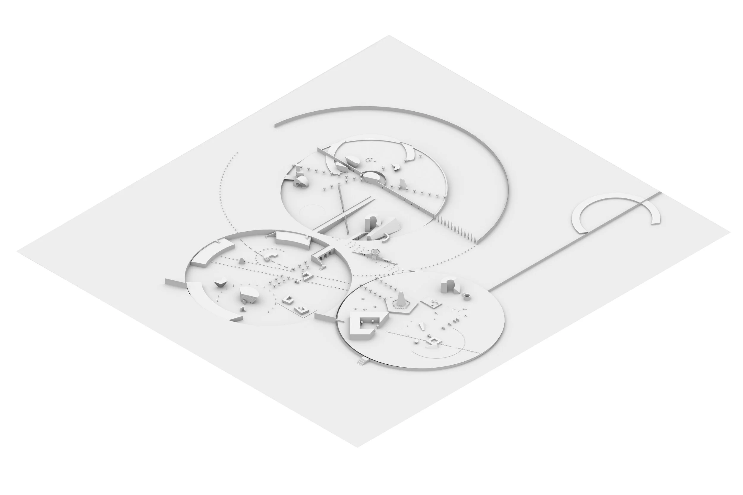 Campus plans were generated using animation software and physics engines. Urban collage precedents from James Stirling to John Hejduk served as case studies.